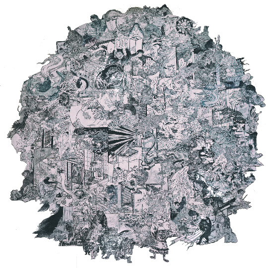 The collage is made of “Yo-Kai(Apparition)” drawn by Sekien Toriyama (1712-1788).